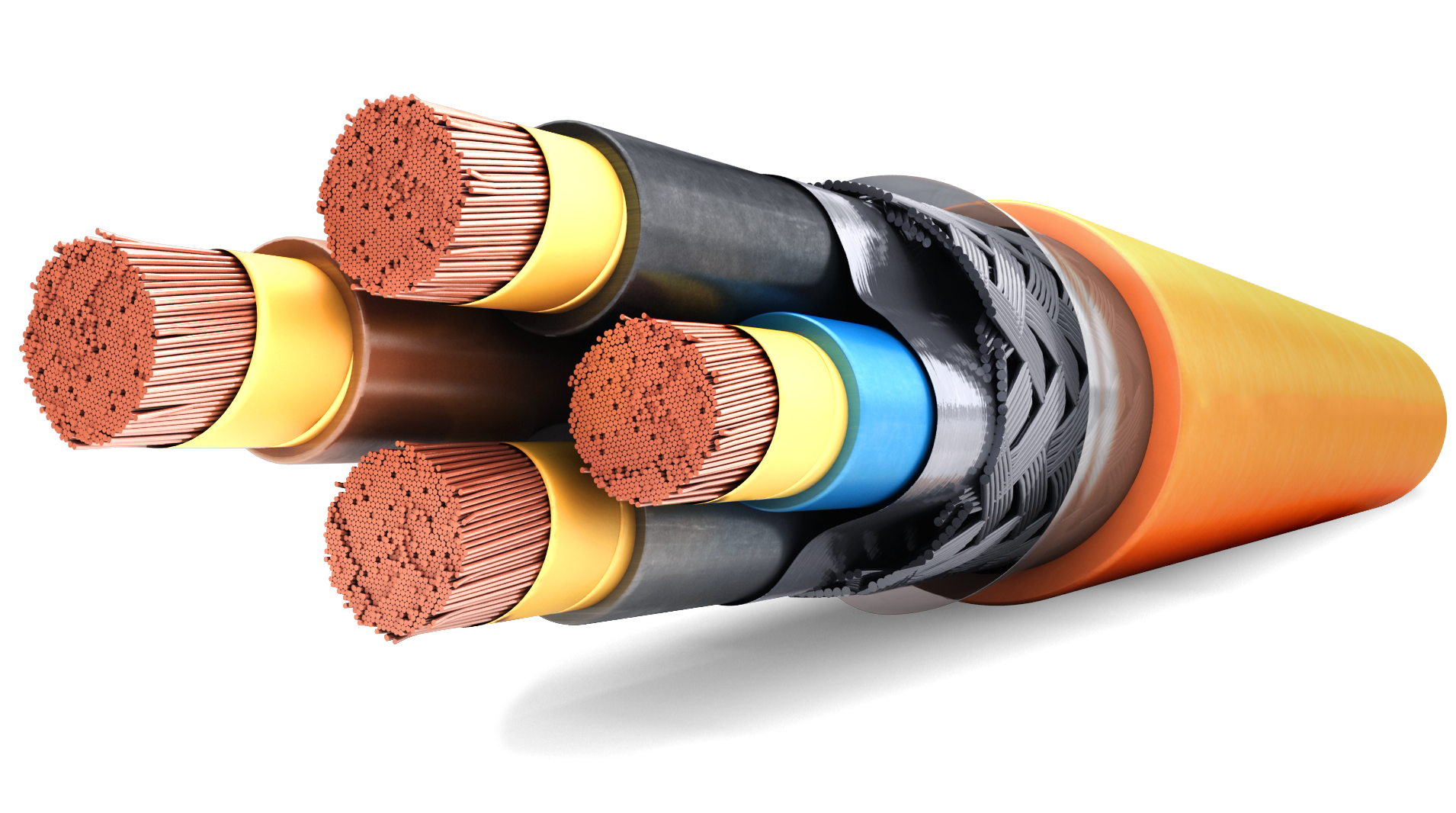 LSHF thermoplastic polyolefin outer sheath SHF1 type. acording to IEC 60092-360. Orange color, non-toxic, fire retardant and fire resistant.