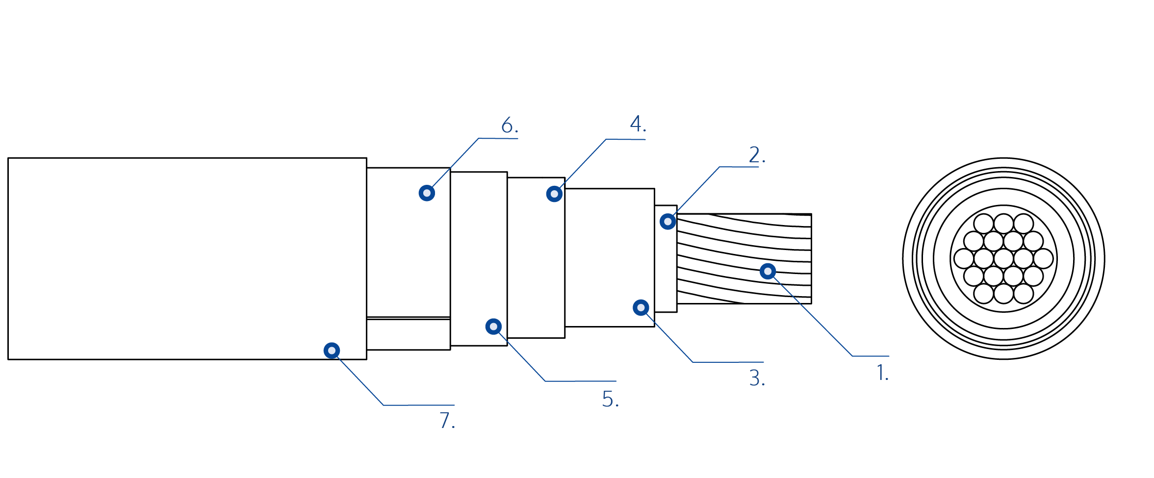 Aluminium conductor class 2 according to EN 60228 and IEC 60228. Optionally, with longitudinal water tightness (cable type -2OL).